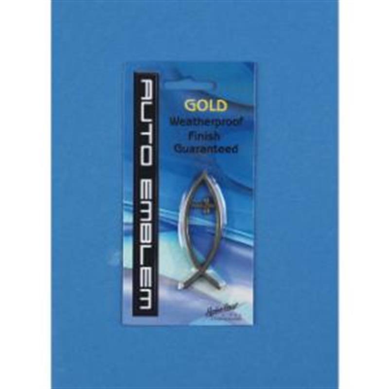 Description: Plain Fish large auto emblem with weatherproof gold metallic finish.