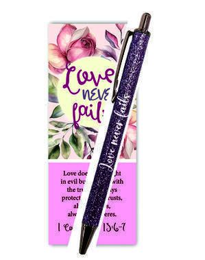 Description: Gel pen with black ink, and an inspirational text featured on the pen barrel.