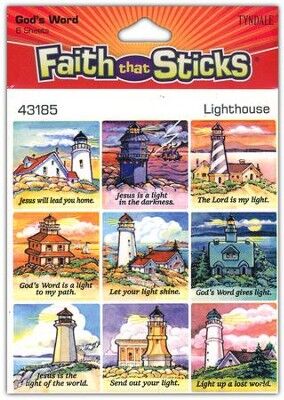 Description: Create a quick craft, mark homework or enhance learning with Lighthouse stickers. Faith That Sticks stickers are also wonderful to embellish cards, letters, scrapbooks and more! Sticker messages include: "Jesus will lead you home."; "Jesus is a light in the darkness."; "The Lord is my light." And 6 more biblical statements. Each sticker page is 4" x 4.5" with 6 individual stickers that are 1.25" x 1.25". Six sheets, 9 stickers per sheet; 54 stickers